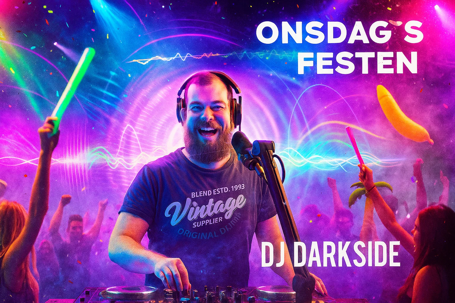 Onsdags Festen med DJ DARKSIDE kører hver aften fra kl. 20.00 til 22.00 på Partyshaker – og her er der garanti for fest! 🎉 Darkside fyrer op for et mix af alt fra pulserende EDM til hårdtslående hardstyle, krydret med skæve, sjove og uventede tracks, der holder energien helt i top. Der er fart, grin og feststemning fra start til slut, når han med sit sprælske humør og skæve vitigheder sørger for, at ingen står stille. Her er intet for normalt, intet for kedeligt – kun ren underholdning i højt gear!